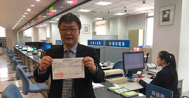 全國(guó)首張環(huán)境保護(hù)稅稅票今天上午在上海開(kāi)出