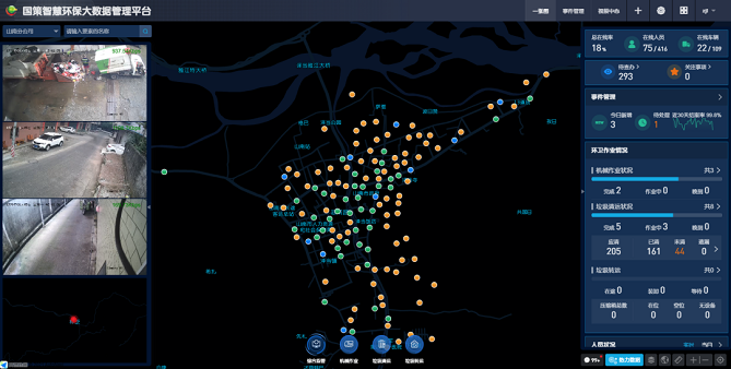 國(guó)策環(huán)保在投入機(jī)械化同時(shí)配套完善了智慧環(huán)保平臺(tái)建設(shè),以感知設(shè)備、智能終端等構(gòu)建的物聯(lián)感層與智慧環(huán)保平臺(tái)共同發(fā)揮了對(duì)環(huán)衛(wèi)各要素等進(jìn)行全程實(shí)時(shí)管控和作業(yè)優(yōu)化,國(guó)策各分級(jí)指揮中心實(shí)現(xiàn)了對(duì)工作人員的精準(zhǔn)調(diào)配,提高了工作效率。與此同時(shí)來(lái)自于甲方對(duì)質(zhì)量的監(jiān)管及公眾的投訴建議與國(guó)策智慧環(huán)保保持高效互動(dòng),更進(jìn)一步改善城市公共環(huán)境質(zhì)量。
